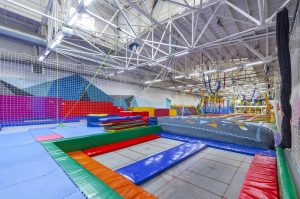 Огромный батутный центр с ареной для прыжков, поролоновыми ямами, спортивными зонами. Подходит для активных детей, которые любят движение и командные игры.