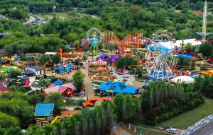 Один из крупнейших парков развлечений на свежем воздухе. Здесь есть аттракционы для детей разных возрастов, контактный зоопарк, верёвочный парк, а также возможность арендовать площадку для праздника. Отличный вариант для активного дня рождения летом.
