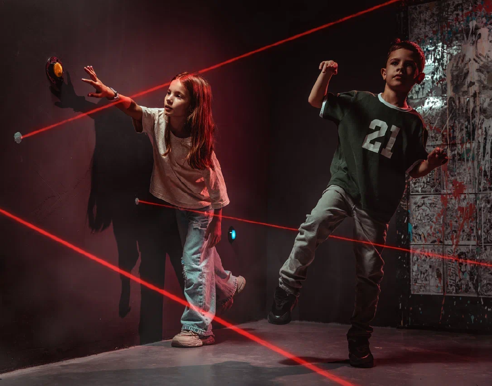 За 60 минут вы пройдете три фиджитал-комнаты, где виртуальное и реальное сливаются в одном приключении! Пиксельный пол реагирует на ваши шаги, в тире вас ждут лазерные и пневматические баттлы, а лазерный лабиринт проверит ловкость и командную работу. Готовы к миссии? Только сплочённость, скорость и смекалка помогут пройти все испытания и победить виртуального злодея!