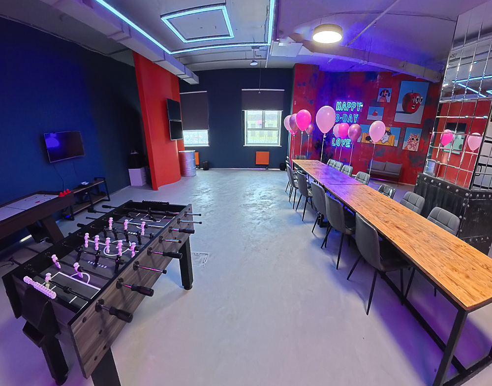 Космос — это уникальное тематическое пространство для космических праздников! В зале есть вся необходимая мебель — детский стол, стол для взрослых, игры и фотозоны, а также место для танцев и дискотек.